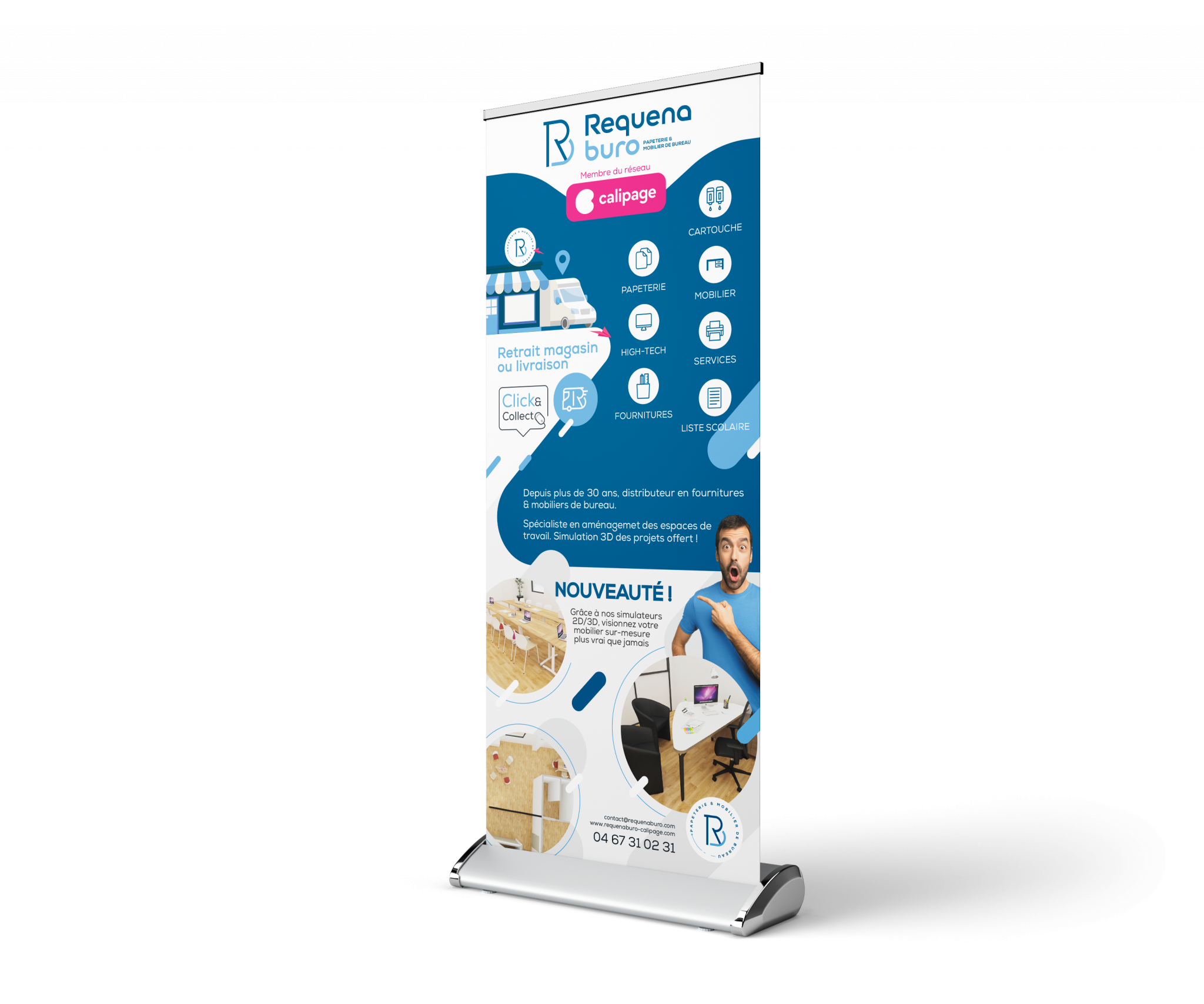 Merci à Requena Buro – Calipage situé dans la ville de Béziers, distributeur en fournitures de bureau & spécialiste en aménagement des espaces de travail de nous avoir confié la refonte de son nouveau logo ainsi que sa nouvelle charte graphique.
